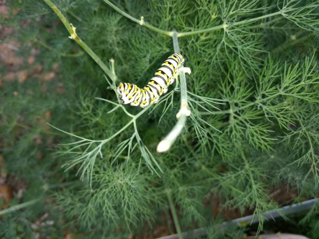 Dill is one of my favorite herbs. When a friend of mine saw this caterpillar munching on it, he was surprised I didn’t have a problem with it. Why? Because that little guy or girl (sorry, it didn’t tell me how s/he identifies) will eventually become an absolutely beautiful black swallowtail butterfly!