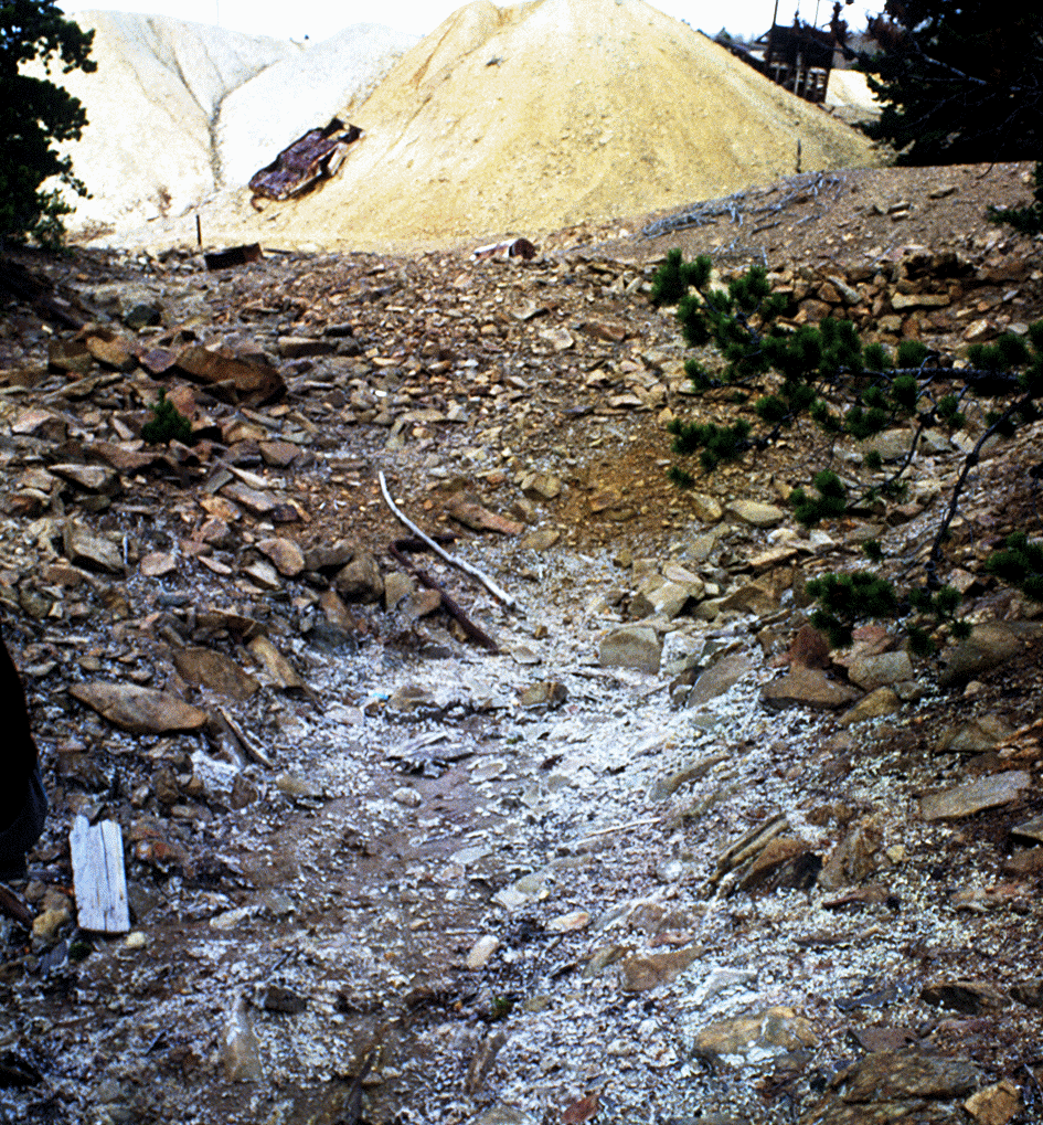 Tailings produced from a gold/silver mine on Quartz Hill, southwest of Central City. Gilpin County, Colorado. October 1992. (Photo courtesy USGS)
